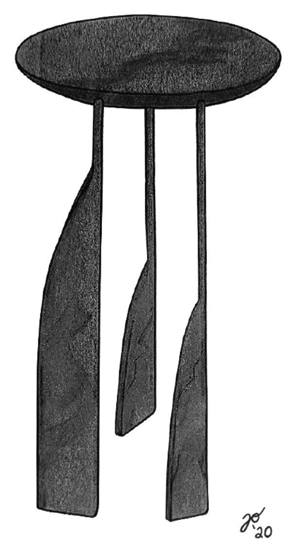 The Fundy Table is inspired by the mystifying erosion of coastal rocks by the changing tide. Each leg slopes uniquely and seamlessly meets a vertical post. When you move around the piece, the effect of kayaking around Hopewell’s isles is replicated.